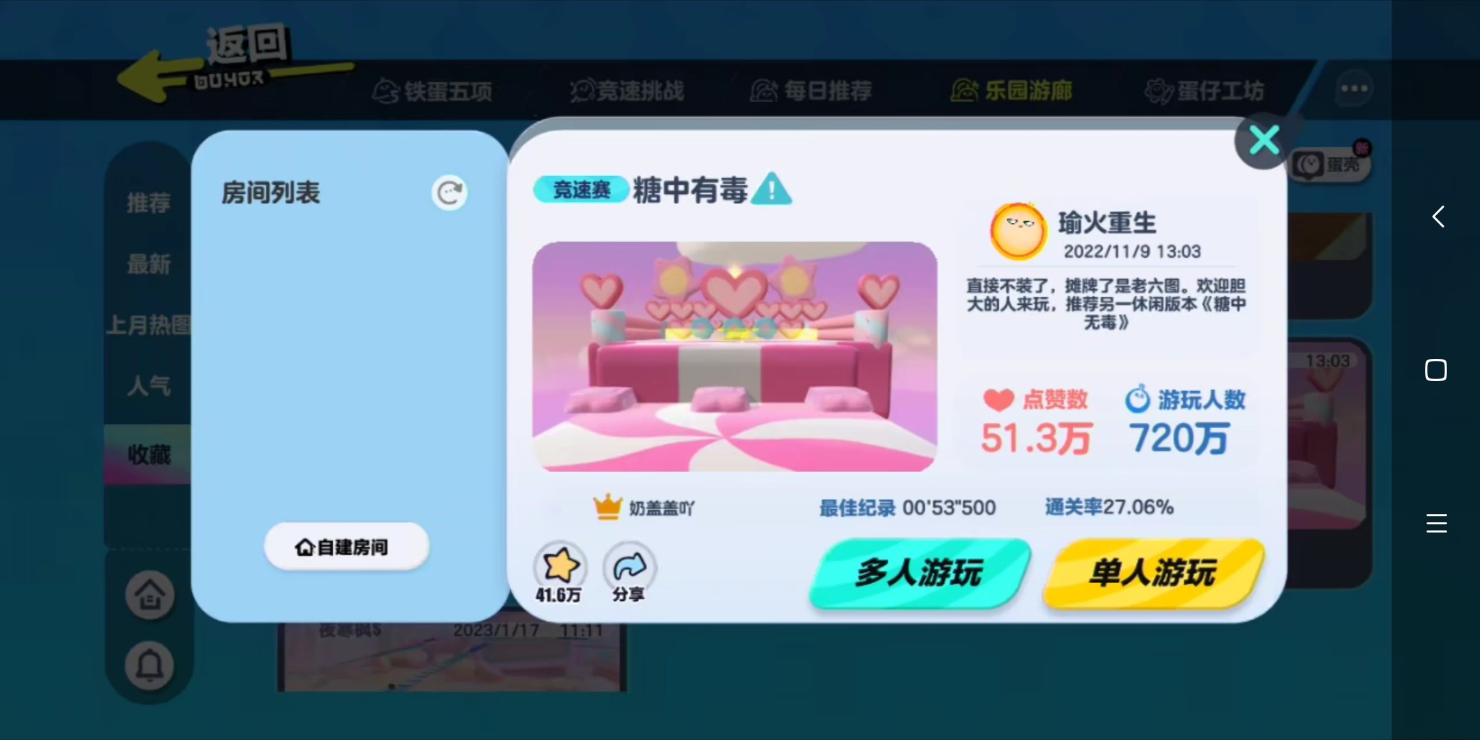 图名:糖中有毒 又是浴火大大搞最早一批的整蛊图 这个通关需要躲避重重机关(可以让蛋搭子探路)当然也可以自己过喽~这个地图很考验智商,只要你脑筋转的够快就能过关,快来和你的蛋搭子打卡吧#蛋仔派对地图推荐#