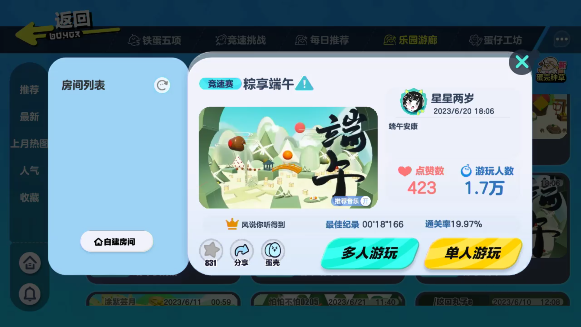 #蛋仔派对地图推荐##蛋仔派对帮帮团# #天天抽免单# 今天给大家带来几张端午的地图,喜欢就去游戏内打卡吧~ top1.粽享端午 top2.粽情端午 top3.仲夏端午 拿起香甜的饺子,诱人的香气令人垂涎欲滴;挺起长长的艾叶,芳香的气息传达着美好的祝愿。 划着快乐的龙舟,激情的鼓声诉说着无尽的思念。 端午节到了!蒲月初五是端阳,棕叶香、包五粮、剥个棕子裹上糖;艾草芳、龙舟忙,追逐幸福勇向上;夸姣的糊口万年长。 民俗民风端午节,家家户户粽香飘。互赠互送联情谊,和睦相处感情深。艾草香溢吉祥照,生活美满甜蜜蜜。 携粽江边看龙舟,投粽喂鱼祭屈原。端午欢颜乐。夏季最期待的节日就是端午节了,看着那三角形状的粽子,就直馋人。 闻着艾草淡淡的香味,却也沁人心脾,划龙舟,赶鸭子,都是我最喜欢的节日娱乐。雄黄酒的传奇故事,熏苍术的祝福,无不透露着节日的喜庆。 处处飘扬着美食香气,弥漫着火热气氛的日子。每家每户都不约而同地在门上挂上了碧绿的艾草、菖蒲,洒黄酒,驱蚊虫,以求端午平安。 这就是今天的推荐啦,喜欢记得关注哟~😘😘
