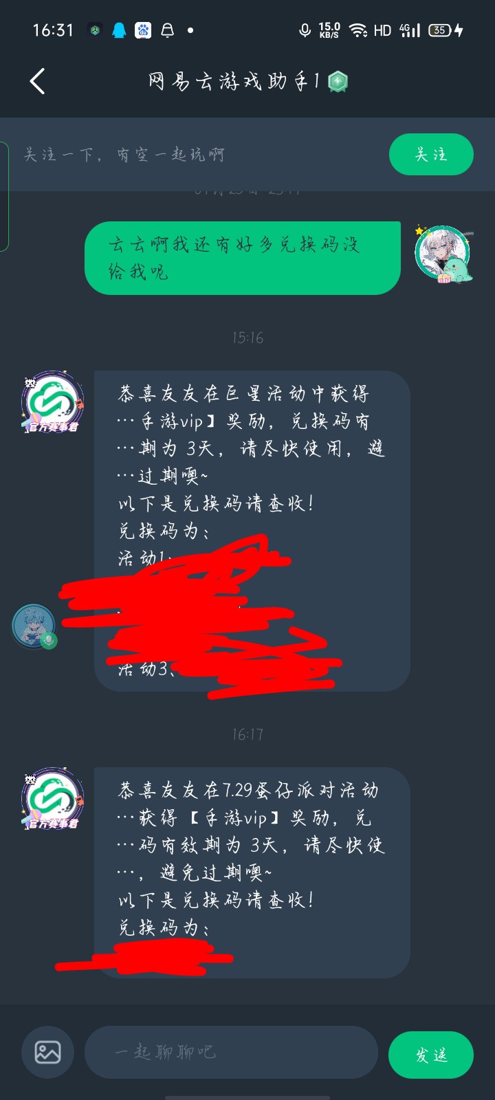 友友们今天云云发了我19个兑换码一共21天会员(信我真的),送三天或者四天的出去,参与方式点赞,评论,关注(不关注的友友没机会哦),我将在8.2日下午6点开奖(这只是一部分)
