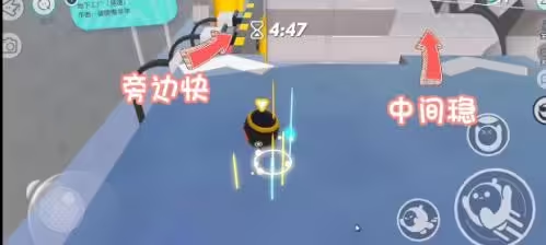 3、接着在弹板的后方上跳起来,将其位置定在中间; 4、随后移动到最左边的位置,然后迅速翻滚冲过去。