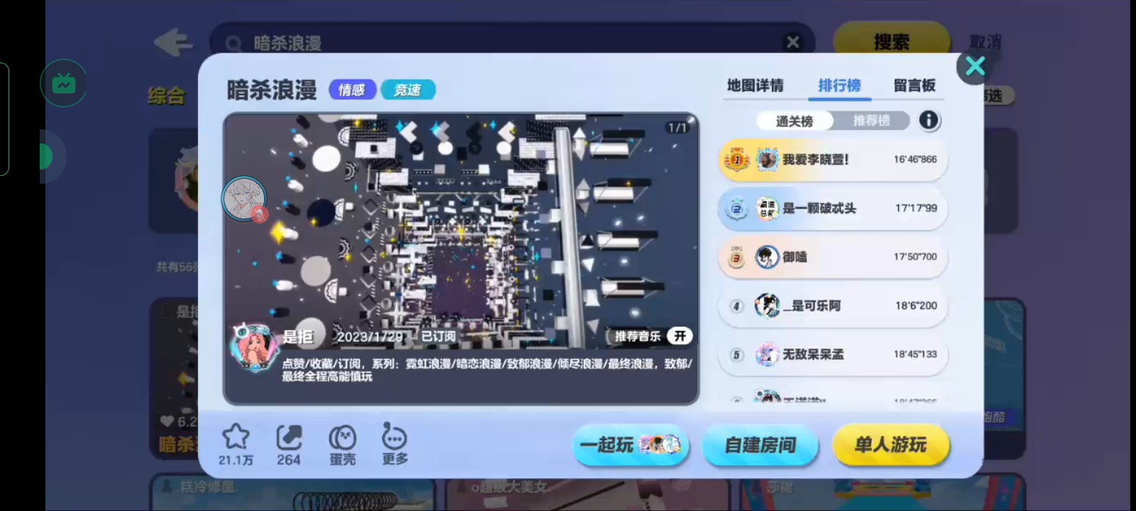 巨星活动_暗杀浪漫 【举办人】星軌╰ 【举办时间】8月28日 14点—18点 【比赛游戏】蛋仔派对 【比赛规则】点击乐园_收藏_找到地图《暗杀浪漫》,限时10分钟,按存档点排名,不可偷鸡或重开(除非卡)