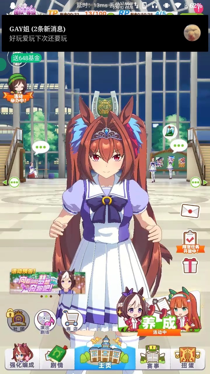 #闪耀!优俊少女 公测# 在玩优俊少女已经经4天了,谈谈我的看法。 在游戏中玩家可以通过养成优俊少女来编成自己的队伍来让自己的队伍实力壮大。不过作为游戏的核心玩法上官方下来不少功夫。优俊少女在养成时的各种突发事件与协助卡事件也十分有代入感。在和养成的少女一起特训,看到她们赢得比赛你也会觉得的开心,在她们输了你也会觉得十分难怪。让这个游戏变得有血有肉。 在游戏的氪金方面我觉得做的十分良心,因为这个游戏就算不抽卡也可以玩的十分开心。 最后就是关于新人对于游戏上手的困惑了,这个游戏上手并不难(只要你老老实实做完新手教程别跳就是了) 好了,我的评测到这里就结束了。希望大家都可以十连三彩,协助俩SSR。