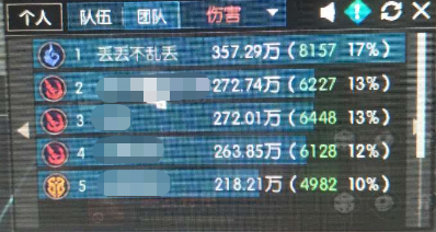 我们清理完小怪后,开始打boss。经过了五次尝试,第一次输出不够,前期减员太多,但在第五次尝试中我们终于过关了。这次的输出情况如下: