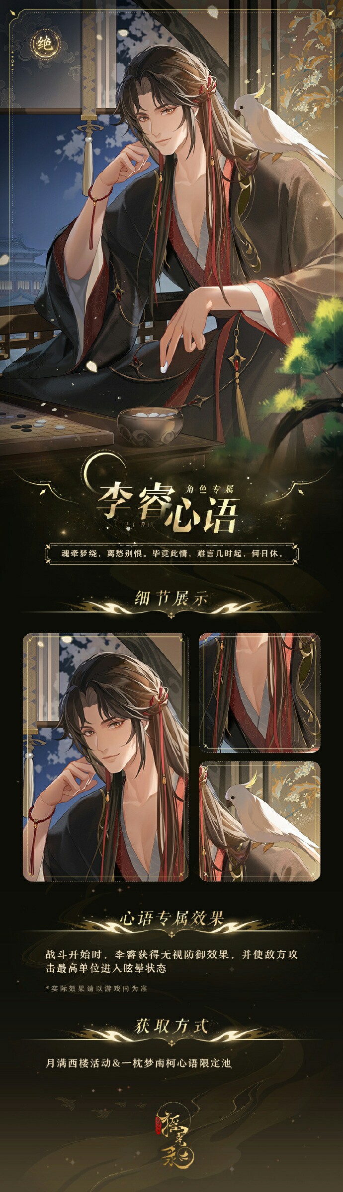 #摇光录:乱世公主#|⭐一枕梦南柯-限定心语结交活动 > 活动时间:9月28日5:00-10月4日23:59 > 活动简介:活动期间将开启限定心语卡池【一枕梦南柯】,卡池中李睿专属心语「一枕梦南柯」结交成功率大幅提高。 *活动结束后,李睿专属心语「一枕梦南柯」将不会进入心愿心语卡池【夙心往志】。 ------------------------------------------------ 更多全新内容,⏰9月28日见~ 🖊版本期打卡登录,豪华时长福利等你~ 💎点我去云玩💎[cloudgaming://startgame?game_code=ygllsgz]