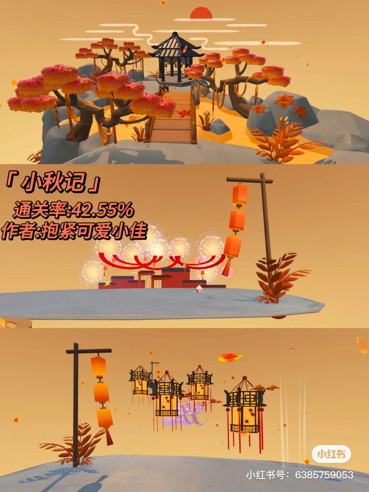 #蛋仔派对帮帮团##蛋仔派对地图推荐# 这张地图是以枫叶为主题,背景设为黄色,地图将秋季枫叶独特的颜色与其中国风完美的结合,秋日与那若隐若现的云彩交相辉映,一幅古风典雅的气息,趁中秋节快来一起打卡吧😁。