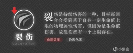 裂伤是一种负面效果,当目标受到裂伤时,每回合会持续受到物理属性的伤害,也就是持续伤害。