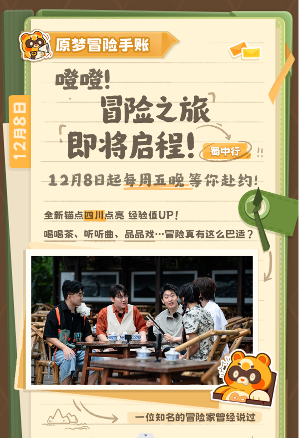 噔噔,冒险家们请注意,原梦冒险之旅即刻启程! 12月8日晚20:30 全新锚点四川即将点亮—— 话说那日,一份神秘人的委托打破了村庄往日的宁静 应约而来的冒险家们集结在一起,相谈甚欢 毕竟他们仍未知道,此行将面临什么样的挑战…… 「如需帮助请呼叫,无所不能的冒险团!」 管泽元、中国boy、莴苣某人、企鹅带带北极熊、自由魂将竭诚为您服务! 希望你会喜欢我们的冒险之旅! 感谢节目特约合作伙伴:灵感中国 感谢四川国际传播中心、川观新闻、封面新闻对本节目的大力支持!