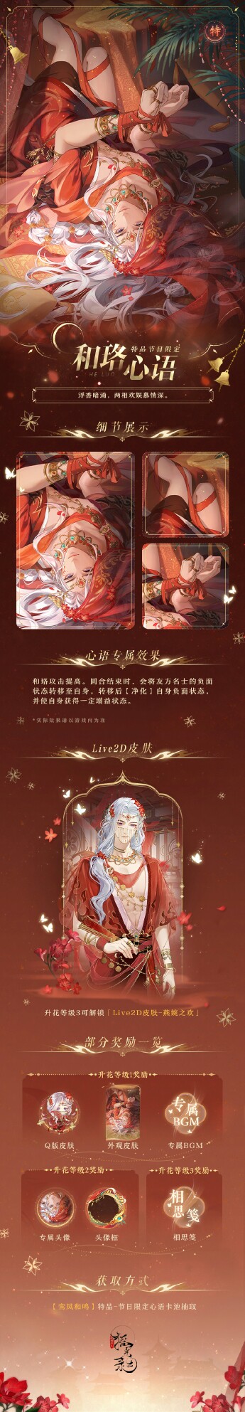 #摇光录:乱世公主#|⏰1月16日全新版本「凰途君梦」 【半周年情报爆料:特品-节日限定心语结交预告】 ⭐活动时间:1月16日5:00-2月6日23:59 ⭐活动简介:活动期间将开启特品-节日限定心语卡池「鸾凤和鸣」,卡池中「李睿・君意萦怀」、「青魂・郎心盈温」、「孙怀瑾・霄梦如故」、「和珞・夙浓情暖」结交成功率大幅提高。 *本期活动结束后,「李睿・君意萦怀」、「青魂・郎心盈温」、「孙怀瑾・霄梦如故」、「和珞・夙浓情暖」将不会进入心愿心语卡池「夙心往志」。 --------------------------------------------- 👉点我一键开启云玩[cloudgaming://startgame?game_code=ygllsgz]👈