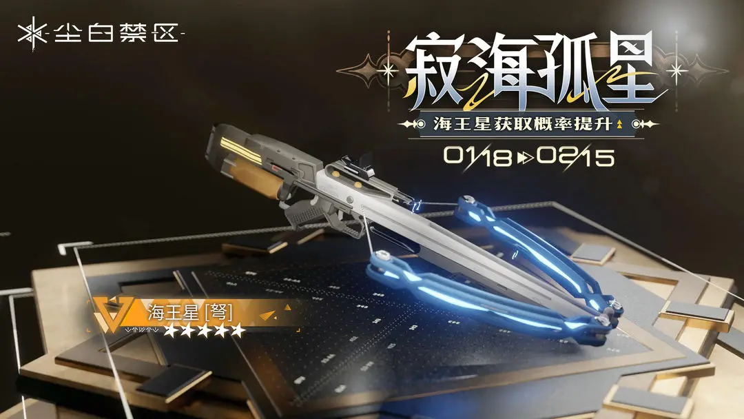 #尘白禁区# | 限时武器共鸣活动【寂海孤星】即将开启,【海王星】获取概率UP! 限时武器共鸣活动【寂海孤星】即将开启,【海王星】获取概率UP! *活动时间* 01月18日维护后- 02月15日04:00 *活动说明* “孤独为伍,名为自我的光”限时武器共鸣活动【寂海孤星】即将开启! 1、活动期间,限定橙色品质武器弩【海王星】获取概率提升(占橙色武器出率的50%)。如果共鸣获取的橙色品质武器非本期概率提升橙色品质武器,则下次共鸣获取的橙色品质武器必定为本期概率提升橙色品质武器。 *【海王星】在本期共鸣活动结束后不会进入【中庭炉心】常驻武器共鸣活动。 2、本共鸣属于【武器活动】共鸣池,与同类型共鸣活动的保底机制共享。 3、更多信息可在游戏内武器共鸣界面右上角【详情】按钮进行查询。