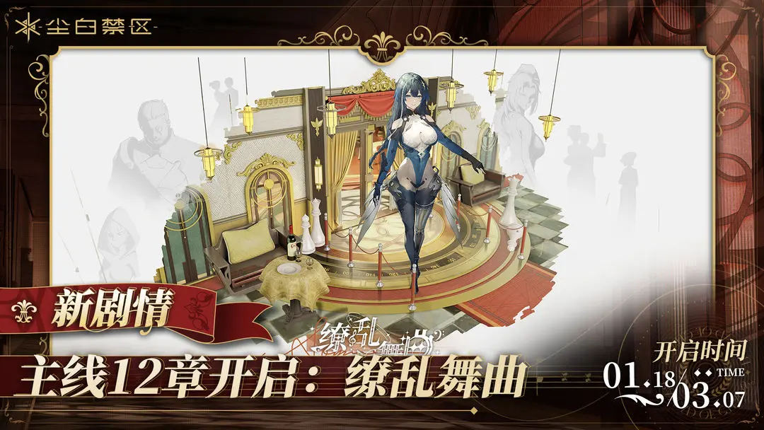 #尘白禁区# |《尘白禁区》1.5「缭乱舞曲」活动公告 分析员一行乘车到达北风航天中心,在查看伊切尔的状况时他眼前出现了幻象...... 终于到达奥尔洛娃公爵的公馆,这里正举办一场奢靡的假面舞会,分析员在舞会上看到一个熟悉的女人。会客室内,女公爵提到公馆被人渗透,为了保护伊切尔,分析员不得不先处理眼前的危机。 一、「缭乱舞曲」系列活动开启 参与条件:分析员等级达到20级 ✧ 先行体验主线故事第12章前篇「缭乱舞曲」 活动时间:1月18日维护后 - 3月7日04:00 活动内容:提前体验主线故事第12章【前篇】内容,进入奥尔洛夫公馆,揭露女公爵的真实目的。 活动说明:活动期间达到等级的分析员可直接体验主线故事第12章【前篇】(无需解锁主线故事前11章)。 ✧【悖论迷宫】挑战玩法 活动时间:1月18日维护后 - 永久 活动说明:悖论迷宫是由研发部主导开发的一款作战仿真推演系统。 该系统在集成过往战斗数据,深度挖掘不同战局特质后,会自动生成多个不同的前进路线。分析员可以利用该系统体验各种随机构建的模拟战局、探索门后隐藏的挑战和机遇,推演出适合自身的最佳战术策略。 ✧【暗雪商盟】活动商店 活动时间:1月18日维护后 - 3月7日04:00 活动内容:活动期间,可消耗【暗雪拉环】或【星芒徽记】兑换包括天启者共鸣誓约、基地纪念品【幻之假面】、橙色品质武器配件【风琴·箭筒】、紫色品质弩【龙胆】、后勤【伊莱】小队三人、量子胞体、碳原子板等各类物资,同时2月7日10:00-3月7日04:00可在无限供应商店限时兑换紫色品质手枪【野蜂尾针】、后勤【秋津】小队三人。 小提示:【暗雪拉环】【星芒徽记】可通过活动玩法及任务获得。 ✧【行进曲谱】活动任务 活动时间:1月18日维护后 - 3月7日04:00 活动内容:活动期间达成任务目标即可获得徽章【舞曲徽章】、数据金、暗雪拉环、星芒徽记等奖励。 ✧【奏鸣回旋】战斗关卡 活动时间:1月18日维护后 - 3月7日04:00 活动内容:活动期间通关战斗关卡,可快速获取【暗雪拉环】。 ✧【坚壁战歌】挑战玩法 活动时间:1月22日10:00 - 2月5日04:00 活动分为五个关卡,将分段式开启。 独行砺战·简单:1月22日10:00 - 2月5日04:00开放; 独行砺战·普通:1月23日04:00 - 2月5日04:00开放; 独行砺战·困难:1月24日04:00 - 2月5日04:00开放; 独行砺战·厄险:1月25日04:00 - 2月5日04:00开放; 共赴终局:1月26日04:00 - 2月5日04:00开放。 奖励发放:2月5日04:00 -2月6日04:00期间发放。 活动内容:活动共分5关,在独行砺战关卡中,分析员需要带领天启者单独作战;在共赴终局关卡中,天启者们需要协同配合进行试炼,可选择2~3人组队,也可以单独进行。 活动期间,会统计所有关卡造成的总伤害,并计入排行榜中,根据分析员的排名会在活动结束后,进行排行榜奖励结算和发放。 ✧【金幕铁域】挑战玩法 活动时间:2月5日10:00 - 2月19日04:00 上半期:2月5日10:00 - 2月12日04:00 下半期:2月12日04:00 - 2月19日04:00 活动内容:活动期间队员将在奥尔洛夫公馆进行御敌战斗,达成抵御波数即可获得对应奖励。每波次御敌有时间限制,结束后的剩余时间可换为龙息令,每完成3波次御敌,可消耗龙息令兑换协助指令。 ✧【永续联战】挑战玩法 活动时间:2月19日10:00 - 3月4日04:00 普通模式:2月19日10:00 - 3月4日04:00 困难模式:2月23日10:00 - 3月4日04:00 活动内容:活动期间,队员需要依靠地形在限定时间内击败来袭敌人,保护己方关键目标。活动期间达成联战任务目标、获得足额精神协作值均可获得对应的活动奖励。 二、【靛影魅羽】【无锋终战】角色共鸣限时开放 ✧【靛影魅羽】角色共鸣 活动时间:1月18日维护后 - 2月15日04:00 活动内容:活动期间,橙色品质角色【凯茜娅-蓝闪】获取概率提升(占橙色角色出率的50%)。 其他说明:活动期间开放该角色试用。 注意:本共鸣属于【角色活动】共鸣池,与同类型共鸣活动的保底机制共享。 ✧【无锋终战】角色共鸣 活动时间:2月8日10:00 - 3月7日04:00 活动内容:活动期间,橙色品质角色【晴-藏锋】获取概率提升(占橙色角色出率的50%)。 其他说明:活动期间开放该角色试用。 注意:本共鸣属于【角色活动】共鸣池,与同类型共鸣活动的保底机制共享。 三、【寂海孤星】【金属灾厄】武器共鸣限时开放 ✧【寂海孤星】武器共鸣 活动时间:1月18日维护后 - 2月15日04:00 活动内容:活动期间,橙色品质弩【海王星】获取概率提升(占橙色武器出率的50%)。注意:本共鸣属于【武器活动】共鸣池,与同类型共鸣活动的保底机制共享。 ✧【金属灾厄】武器共鸣 活动时间:2月8日10:00 - 3月7日04:00 活动内容:活动期间,橙色品质手枪【普赛克16】获取概率提升(占橙色武器出率的50%)。 注意:本共鸣属于【武器活动】共鸣池,与同类型共鸣活动的保底机制共享。 四、【荣光盛宴】限时签到活动开启 活动时间:1月18日维护后 - 2月8日04:00 活动内容:活动期间,分析员累计登录签到7日,可累计获得天启者共鸣誓约*10。 五、【春之狂想】限时签到活动开启 活动时间:2月8日10:00 - 2月29日04:00 活动内容:活动期间,分析员累计登录签到7日,可累计获得包括头像·律动之星、聊天气泡·新春祝语、怦然庆喜扭蛋机、武器定制合约奖励。 六、【感知巡游】限时消耗感知活动 活动时间:2月8日10:00 - 2月22日04:00 活动内容:活动期间,消耗感知可获得等量智识巡游度,通过消耗智识巡游度
