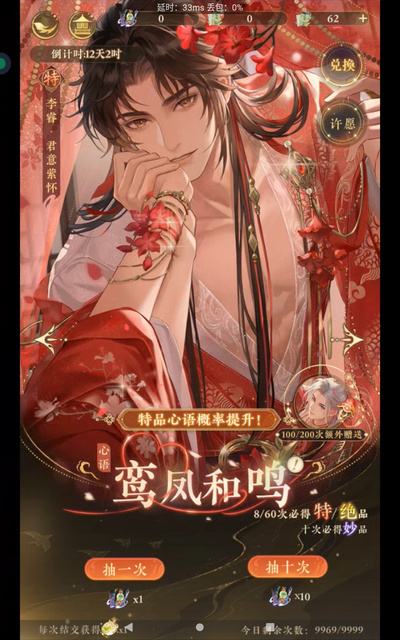 没铃铛,60抽左右歪了和珞。110抽中哥哥了,开心死。看着还有些又抽了一把然后哥哥又来了。他真爱我。