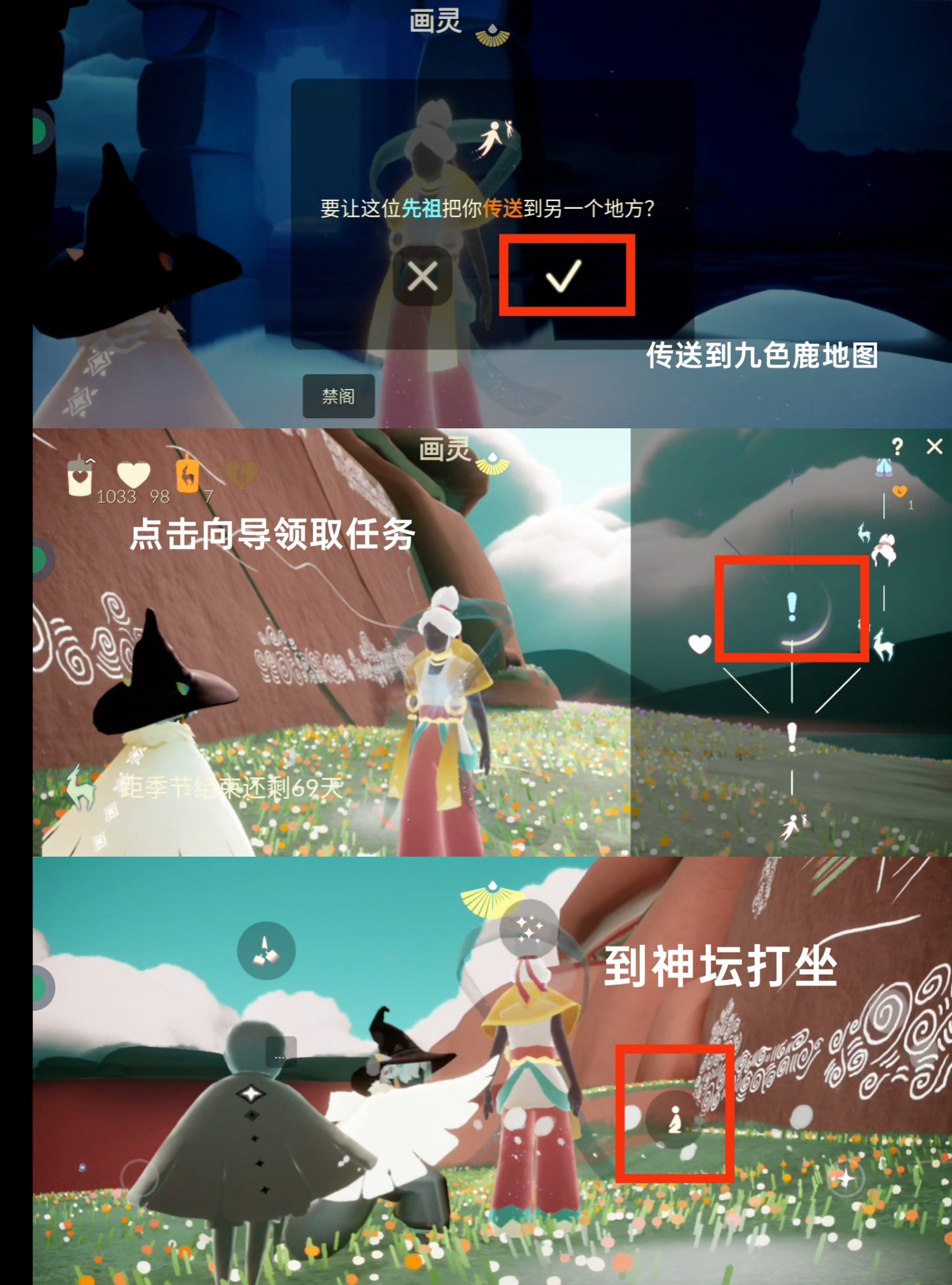 九色鹿任务二攻略来咯~请看下图~前四张图都是长图噢,记得往下滑动图片~#光遇九色鹿季##光遇帮帮团#