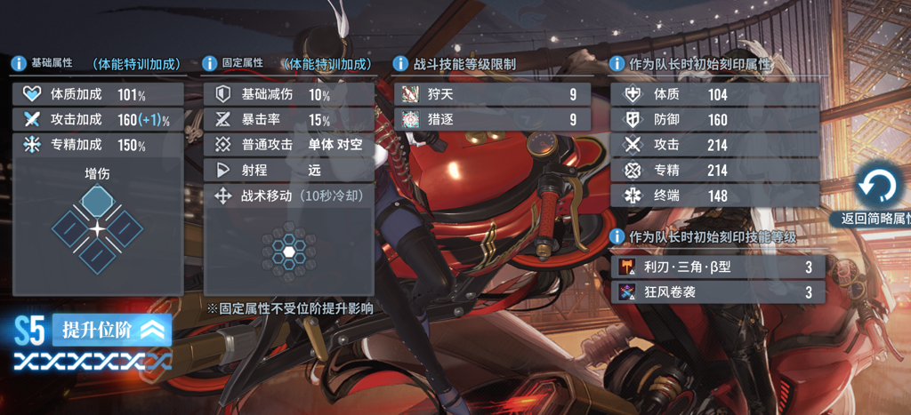 她的面板属性表现出色,尤其是作为队长的攻击和专注属性初始值极高。仅仅一张60级的攻击或专注卡牌就能让她的属性达到1000。