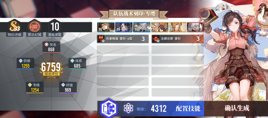 比如以前吐槽风队失途专武不够专,因为缺少技能点来提升小技能(高难度的路线技能)。用通用卡(体·残照/防·因果历然+噩梦/攻·血露薇/精·诞生/终端·烟尘往事)五五开,现在终于可以通过小技能拉开与其他玩家的差距。轻松秒杀boss,怒刷刻印,提高评分,完善技能点,不再为d6卡米拉小姐姐而烦恼。