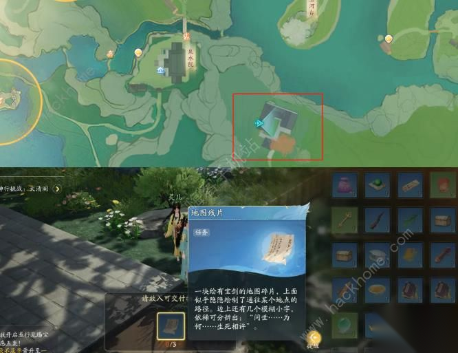获得这个头像框的第一步是接受任务。玩家需要前往灵水院,然后找到灵儿接受任务。任务提示玩家需要收集三张地图,而这些地图都可以在江湖小屋的下方找到。完成这一步,便迈出了获得百年留金头像框的第一步。