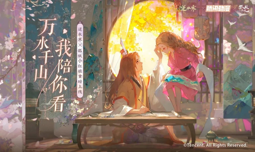 #逆水寒#万水千山,一路相伴 王权富贵携手小蜘蛛清瞳到访逆水寒! 春来风景好,最适合去山水之间惬意游玩了!跨越千山万水,一路相依相伴,这可太浪漫了!快看小寒发现了什么,王权富贵竟然带着清瞳跨越时空到访逆水寒江湖了! 剑意冲霄向明月,寒光辉映兵人骨。王权富贵同款时装【兵人剑骨】融合了道家元素,领口处绣着卦象图案,腰间附有太极图装饰,透露出道门的庄严与端方。 山水千重意万重,捻就清晖织锦绣。清瞳同款时装【千山如织】以紫色为主,衣袖之上还以银线精心绣制了细密的蛛网,裙袍之上则附有花叶暗纹,温柔而婉约。 王权富贵同款时装【兵人剑骨】、清瞳同款时装【千山如织】将于4月26日(星期五)至5月23日24:00限时上架商城,直售价98元,附赠时装同款妆容。可以选择使用半价券进行购买,券后49元即可获取。 4月26日(星期五)至5月23日24:00,【兵人剑骨】专属稀有发型【炳耀】、【千山如织】专属稀有发型【玉丝】也将上线天赏奖池,可使用一枚天赏石进行兑换,兑换后将同步解锁金发专属头像。