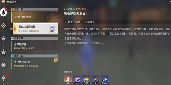 综上所述,本文详细介绍了在游戏《崩坏:星穹铁道》中完成“愚者总按两遍铃”任务的具体步骤。玩家需要传送至酒店位置接取任务,然后根据指引与宾客进行对话,并向多个NPC赠送礼物。通过这些互动,最终完成对话,玩家就可以顺利完成任务并获得相应的奖励。愿本文提供的攻略能帮助玩家更加高效地体验游戏,同时欢迎大家来我们网易云游戏的平台上进行相关交流讨论。