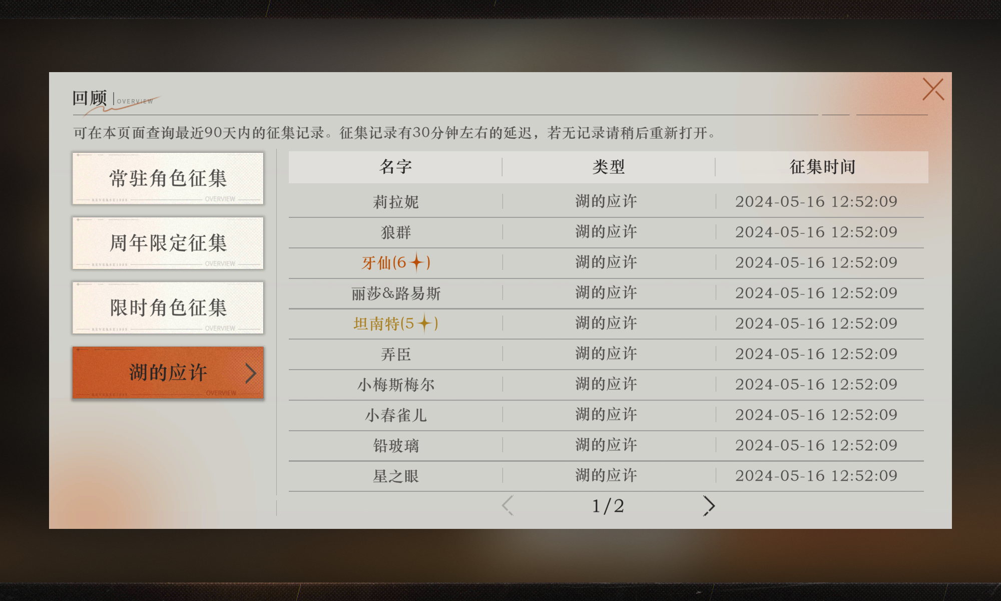 本人这个从玩开始就次次七十保底出货的非酋 今天终于欧了一次。十五抽出牙仙! ——以及我开的五级的小号 怎么额外送66抽?大号根本没。。