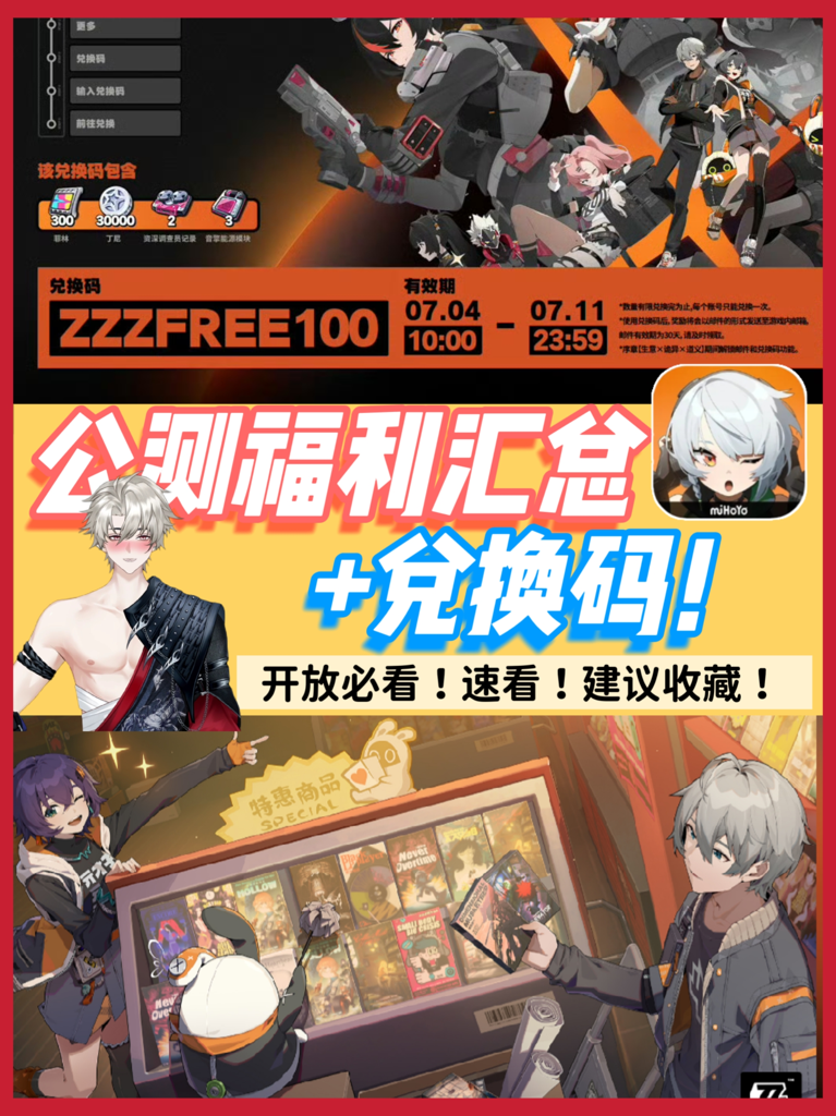 在公测期间,玩家可以使用兑换码"zzzfree100",获取丰厚福利。登录游戏即可获得30次抽奖机会,并参与各种游戏活动。在游戏中,最多可以累计获得100次角色券和80次邦布券的抽奖机会,还有机会获得a级代理人等丰厚游戏奖励。