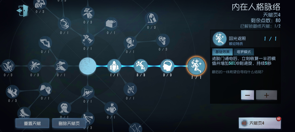 在游戏中,天赋扮演着非常重要的角色。比如说,“大心脏”天赋就是其中之一。天赋页中的“回光返照”位于天赋页最右侧,是必备的重要天赋之一。修开五台密码机时,能够在关键时刻迅速回血加速,因此被称为“大心脏”。这个天赋在求生过程中起到至关重要的作用,是玩家不可或缺的选择之一。