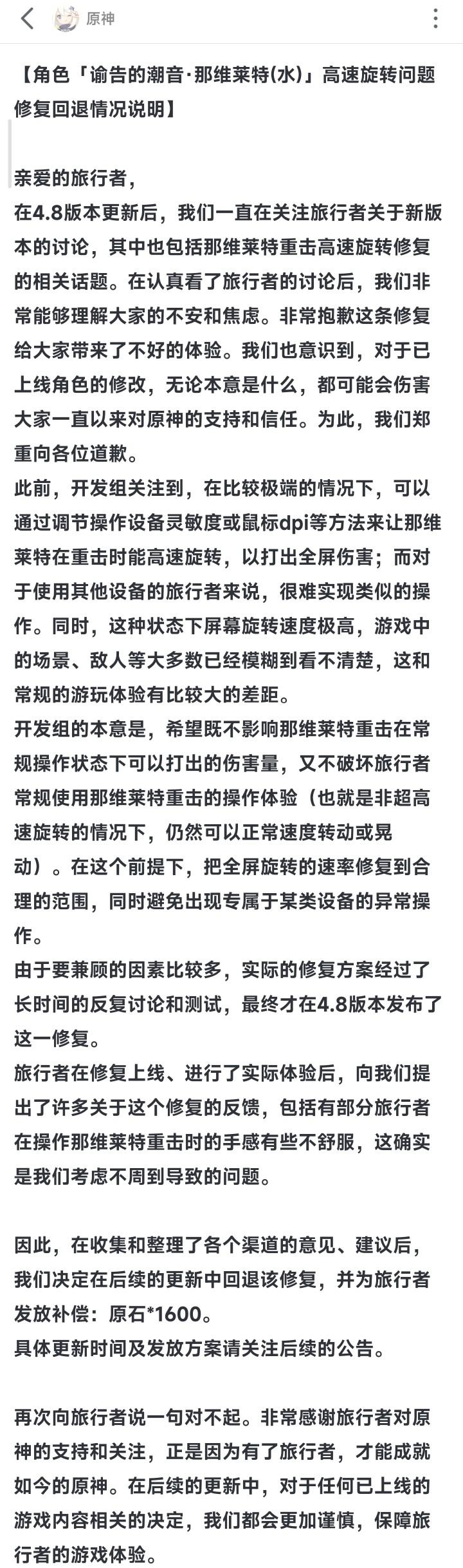 米哈游高速滑跪 龙王转圈回退 补偿全体原神玩家1600原石 这波老米赚了热度,玩家也白嫖1700原石,皆大欢喜了属于是 (虽然补偿的原石也只是从后面版本里的探索扣出来的)