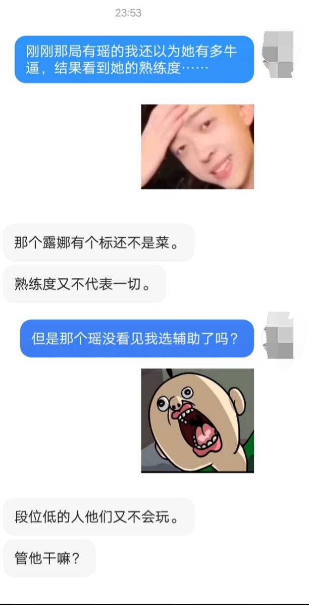 对啊对啊,我管她干嘛,她想拿辅助跟她的野王就拿呗,不用讲究先到先得的规矩,中路队友骂有两个辅助我顶着就好。你有你的事情要处理你有你的看法我管不了,因为我只是个刚入王者不久的萌新,你是王者的野王。我只是一时兴起的玩,和你也是