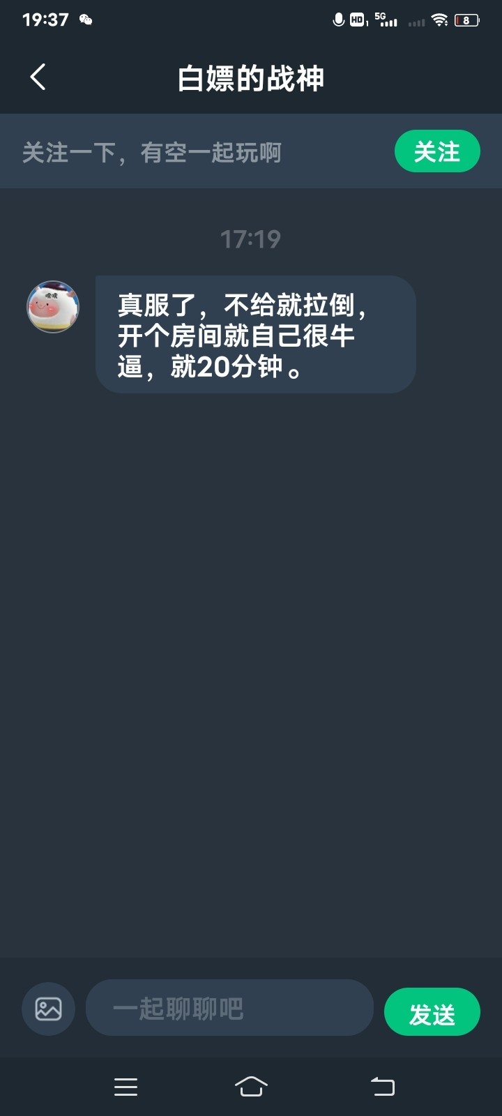 哇咔咔,又一个迷惑人好吧,名字叫白嫖的战神 真是的,我朋友说了,整点换,又不是20分钟换一次 之后还整破防了,私信骂我朋友,我服了好吧😂🖕这孩子无敌了😂🤓