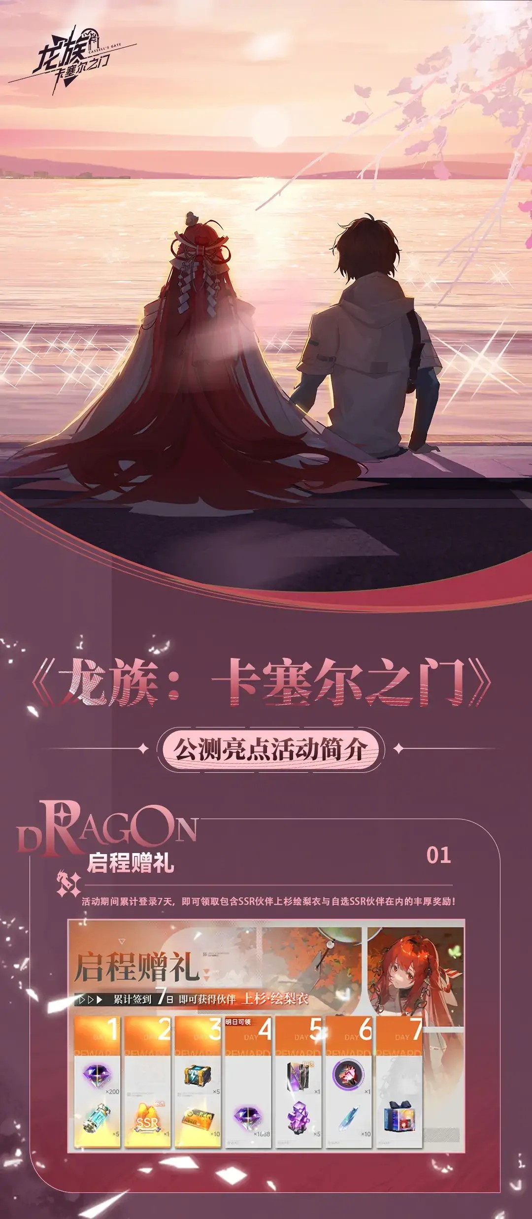 一图看懂《龙族:卡塞尔之门》公测亮点! 亲爱的专员: 《龙族:卡塞尔之门》将于9月12日10:00开启全平台公测。 我们提前为专员们准备了公测版本的亮点内容介绍,请各位专员查收! 此外,我们更为所有专员准备了倒计时专属礼包码: SAKURA 待游戏公测后,点击主界面左下角头像-兑换码,输入兑换码即可领取礼包哦! 提前祝各位专员们在卡塞尔度过愉快的校园生活!