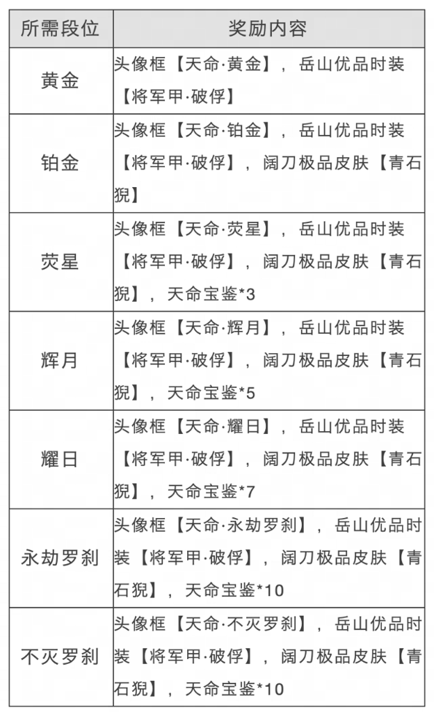 备注:在达到永劫罗刹后,每100分可获得1品,攀升至10品即可转为不灭罗刹。