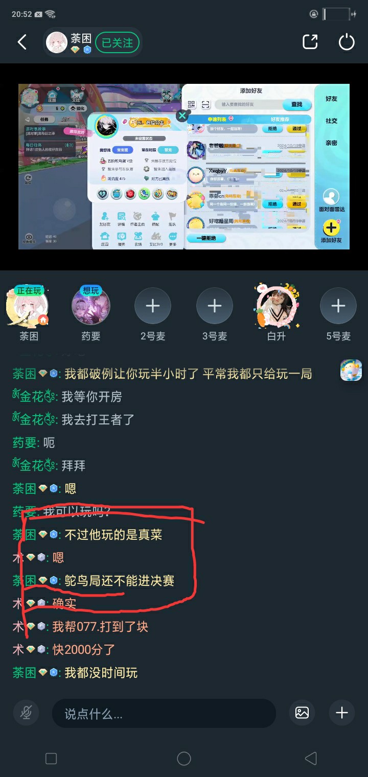 有点委屈今天晚上也就是11月16日@茶困她不是让我帮忙做疯狂星期六那个任务嘛然后我比较那个啥竞速不行但是我生存可以然后我就去帮他做任务做完之后呢我给他发了截图她也说好然后那个叫术的来了就说那个3麦被挂过我当时也解释了一下说那个人家都原谅我了你还有什么说的然后我就没管了然后我就假装退出房间然后又回去就看见了然后就她吧我拉黑了我当时也说过了是我妹弄的我当时在学校上晚自习8:35下自习我回家之后就看见了我妹在拿我手机玩我有什么办法那个是我爷给我妹玩 第一次发这么长的广播不太会别笑啊🌚😂祝你们在这个软件上面玩的开心😁谢谢♥。