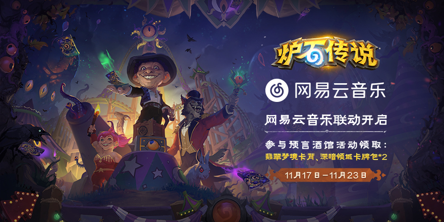 赶紧登录网易云音乐(app),搜索「炉石传说」,前往酒馆,领取你的好运气吧!你将获得「翡翠梦境」卡背以及两包「深暗领域」卡牌包~请大家留意:活动结束后,已参与H5互动的玩家仍然可以在活动页面领取奖励,截止时间为2024年12月31日23:59。不过,未在活动期间体验的玩家将无法获得卡包和卡背奖励,务必及时参与哦~