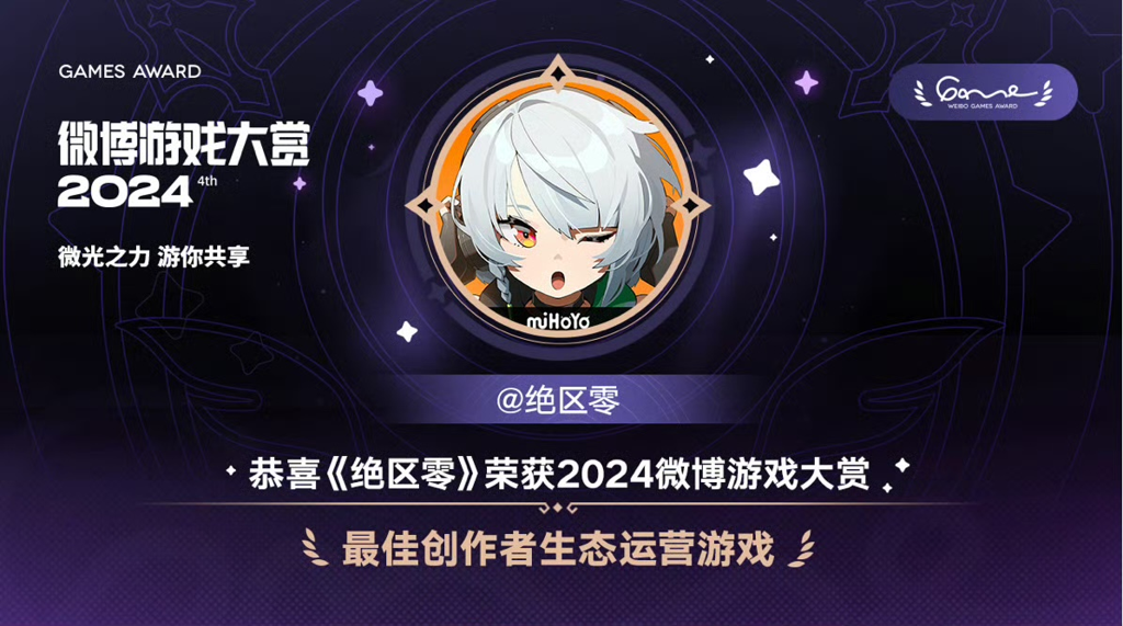 绝区零荣获2024微博游戏双奖,成年度热门新游