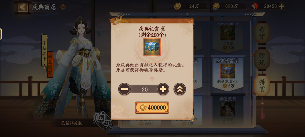 不过,遗憾的是,我的青吉鬼数量不足,等我将御魂数量提升至2000时,就会优先兑换御魂箱。