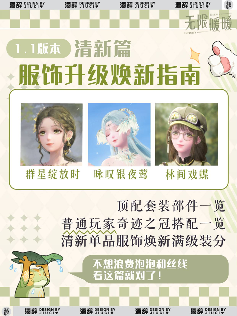 评分标准为:顶配>平替,免费>部分平替。鉴于银夜莺的制作较为困难,建议先从发型、帽子等易于获取的部件开始着手。