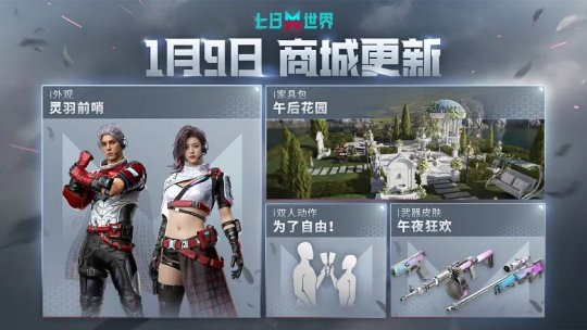 总结一下,本文介绍了《七日世界》游戏中的全新更新内容,其中包括了即将于1月9日上架的商城外观。在这次更新中,玩家可以体验到不同的时尚和风格选择,如“午后花园”的浪漫古希腊风情家具包,以及“灵羽前哨”的卓越品质时装外观,巧妙结合了轻盈的设计与科技感。此外,还推出了各种主题包和武器皮肤,尤其是“午夜狂欢”系列,以其粉蓝紫的梦幻色彩,为玩家带来视听享受。欢迎大家来我们网易云游戏的平台上进行相关交流讨论。