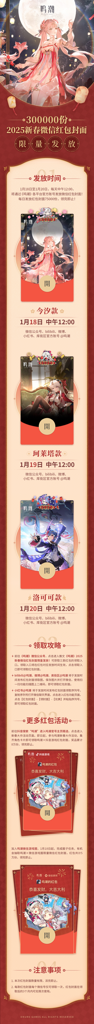 1月18日至20日,每天中午12点,《鸣潮》将在各大官方平台发布微信红包封面。