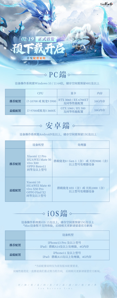 云游戏服务「云·仙剑世界」将在02月19日正式开服时公布具体信息。