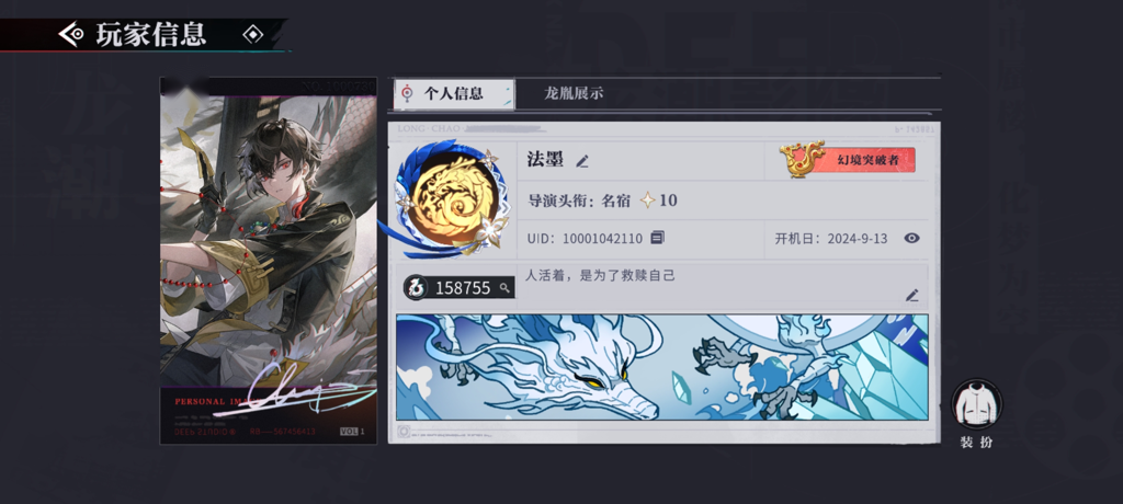 当然,不能忘记我们的最强嘴替,导演的每一场戏都离不开他!有瞳在,我们就不担心没有戏可以演! 我从未跳过任何剧情,因为我深信它们都是值得欣赏的。尽管秦局长和寒衣的故事没有配音,但我依然觉得非常精彩。最让我心动的角色是烛,宣传时我就被这个双龙伴身的少年吸引住了。可惜第一次抽卡没能抽到他,直到现在我才集齐所有角色。烛复刻时我买了两期导演请就位,顺利拿到了二命,还买了青龙的皮肤。秦局长和拂云也都获得了一命。我对这个游戏的热爱是发自内心的,真心希望它能越来越好,千万别关服啊!