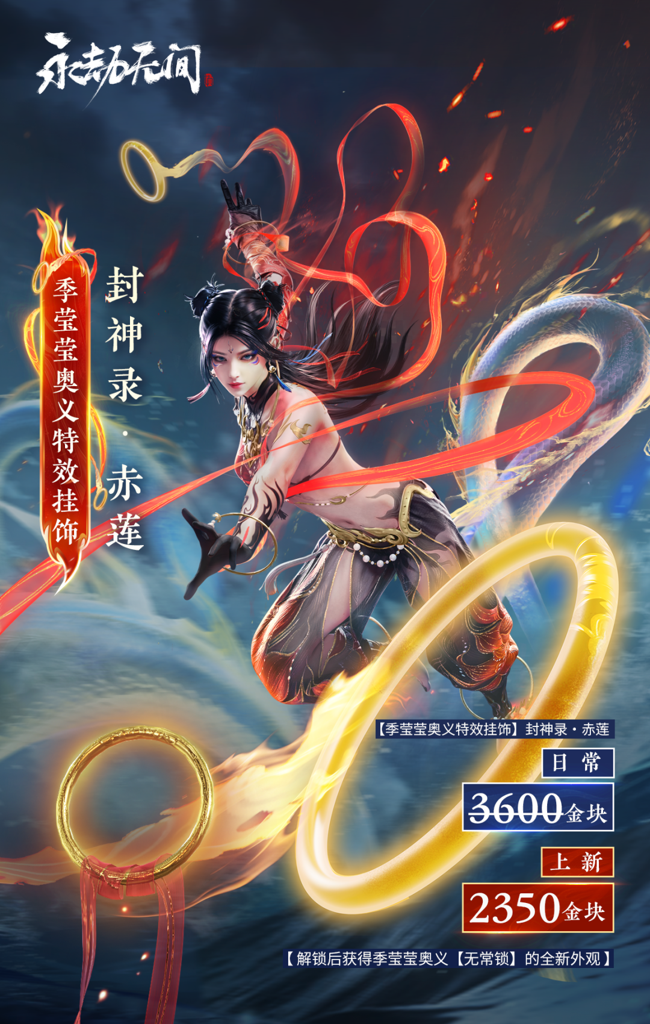 这次更新中,备受瞩目的哪吒套装也会随之推出,此外,之前端游一直缺失的乾坤圈混天绫也将登场。同时,水娘的敖丙套装也会一并上线。