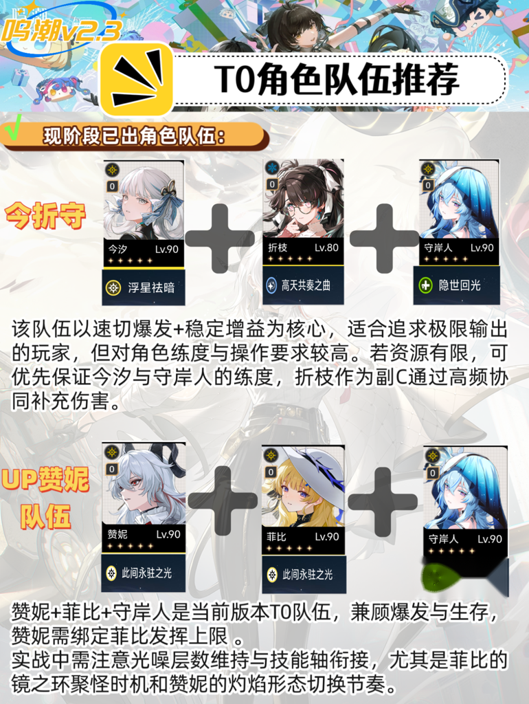 关于角色搭配:我们将从0链专武的角度出发,对队伍进行分析与排名。同时,考虑到角色的拥有率与使用频率,大家常用的组合也会被纳入总结。