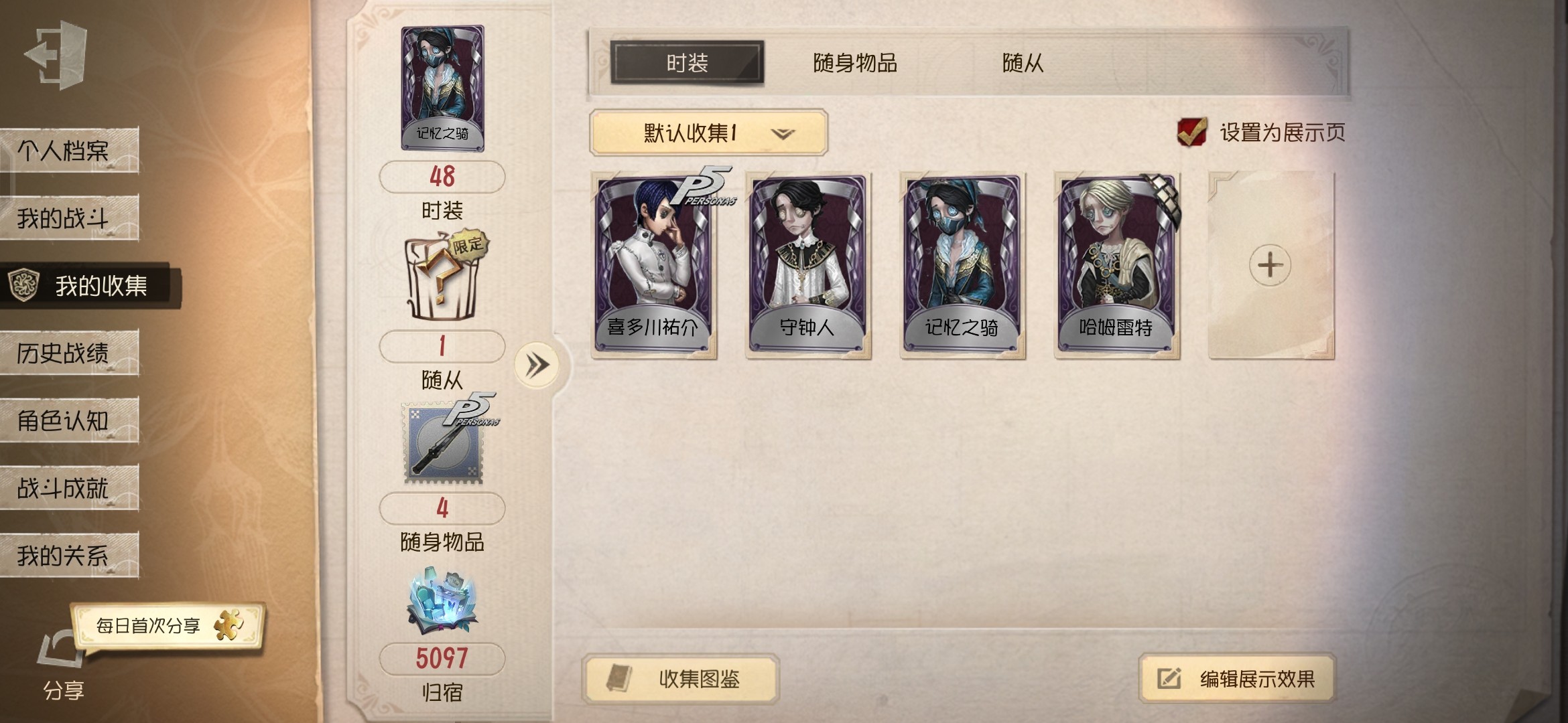 给两个号蹲共 要长期 p2加好友跟我说 p1不管 我住宿号子不怎么能玩 p1主养入殓p2调香 常玩的都有皮 #第五人格周年庆#