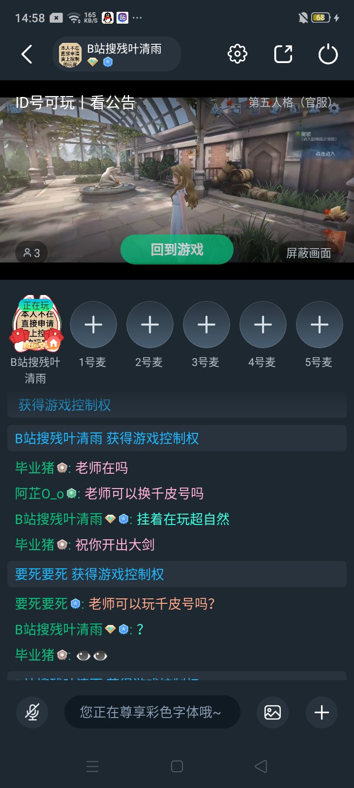 挂哪个号是我的自由吧,一进房间一把不开,换归宿翻角色,最后来一句能换千皮号吗?ID要死要死,你是真要死?第一次见面让我换大号给你玩?你没事吧???