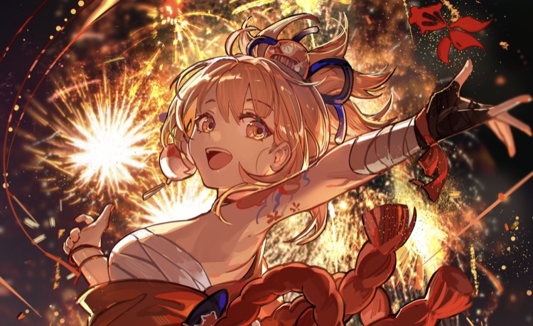 生日快樂,宵宮 嗯,這是給你過的第一個生日,我在稻妻混池抽到你了,但是沒來得及給你抽個專武,話說回來,你也是我抽自推唯一一個是小保底不歪的,看到出金並且沒歪的時候我真的很激動、我希望你在那邊天天開心,我的小太陽^ ^