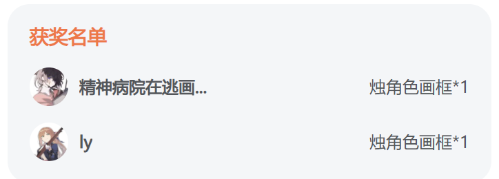 热烈祝贺以下幸运导演在本次活动中赢得【烛角色画框*1】的丰厚奖励!