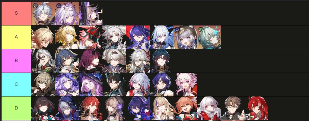 C等级角色包括黑天鹅、流萤、希露瓦和克拉拉,他们的能力相对较弱,但在团队配合和特殊战术中仍有一定的价值。