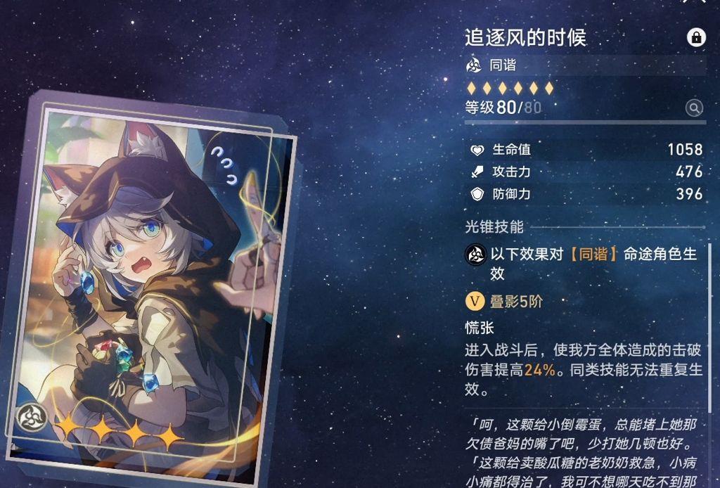 这款光锥专为阮梅设计,配合击破队使用效果最佳。其伤害加成与同谐主行迹的超击破增伤效果彼此独立,不会相互干扰。同时,忘归人4魂与该光锥共享一个乘区,彼此会相互稀释增益。目前,只有在追逐风和忘归人4魂两个非模拟宇宙场景下,它们才会处于同一乘区,从而实现伤害的最大提升。