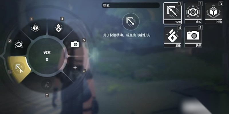 在移动设备上进行操作更加便捷直观,玩家只需轻触屏幕上的探索按钮,然后长按对应的技能图标,即可快速切换技能。目前,鸣潮提供了四种不同的探索技能,分别是钩锁、感知、控物和信标。钩锁技能不仅可以帮助玩家迅速攀爬高墙,还能在战斗中巧妙避开地面攻击,或者限制敌人的移动,为战斗增添更多策略。
