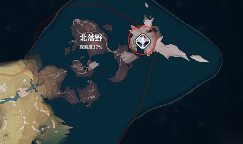 在地图的最东北角,有一个被灰色区域包围的秘密地点,紧邻北落野区域。
