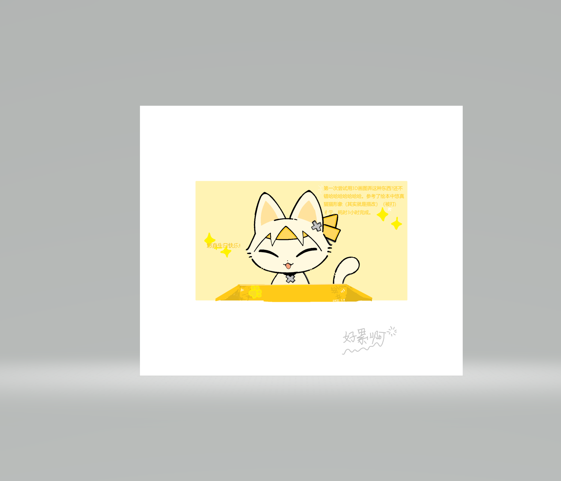 #同人创作#有点晚了。(电脑一点也不方便。。。。但我现在只能用电脑,找了半天找到广播位置了(不方便看回消息因为根本点不进去且无消息提示)。啊,夜深了,但是,咳咳,加班赶个画吧。垂死病中惊坐起,一看绝官方,好家伙今天悠真生日!(跳起来)(开始起...鼠标?)那悠真生日日快乐!(一些话放在画中,如果能放大那看看,不想重复啦)这东西3D画图弄的,现在我纸绘传不了电脑,用3D画图试试(这可一点都不好弄)(擦冷汗)但总体不错哈哈哈哈哈。悠真猫猫!!可爱!!!喵喵喵喵喵喵喵(倒地)啊~~~~