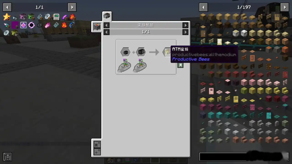 接下来我们要制作振金蜜蜂,这需要用末影龙蜜蜂和远古蜜蜂通过繁殖获得